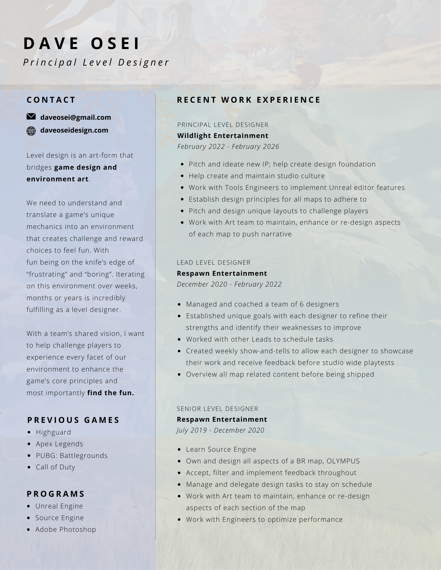 With a team’s shared vision, I want to help challenge players to experience every facet of our environment to enhance the game’s core principles and
